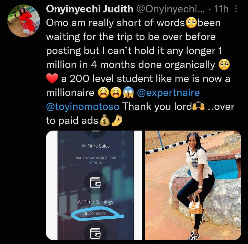 ONYINYECHI as a 200L Student, has made over 1 Million Naira